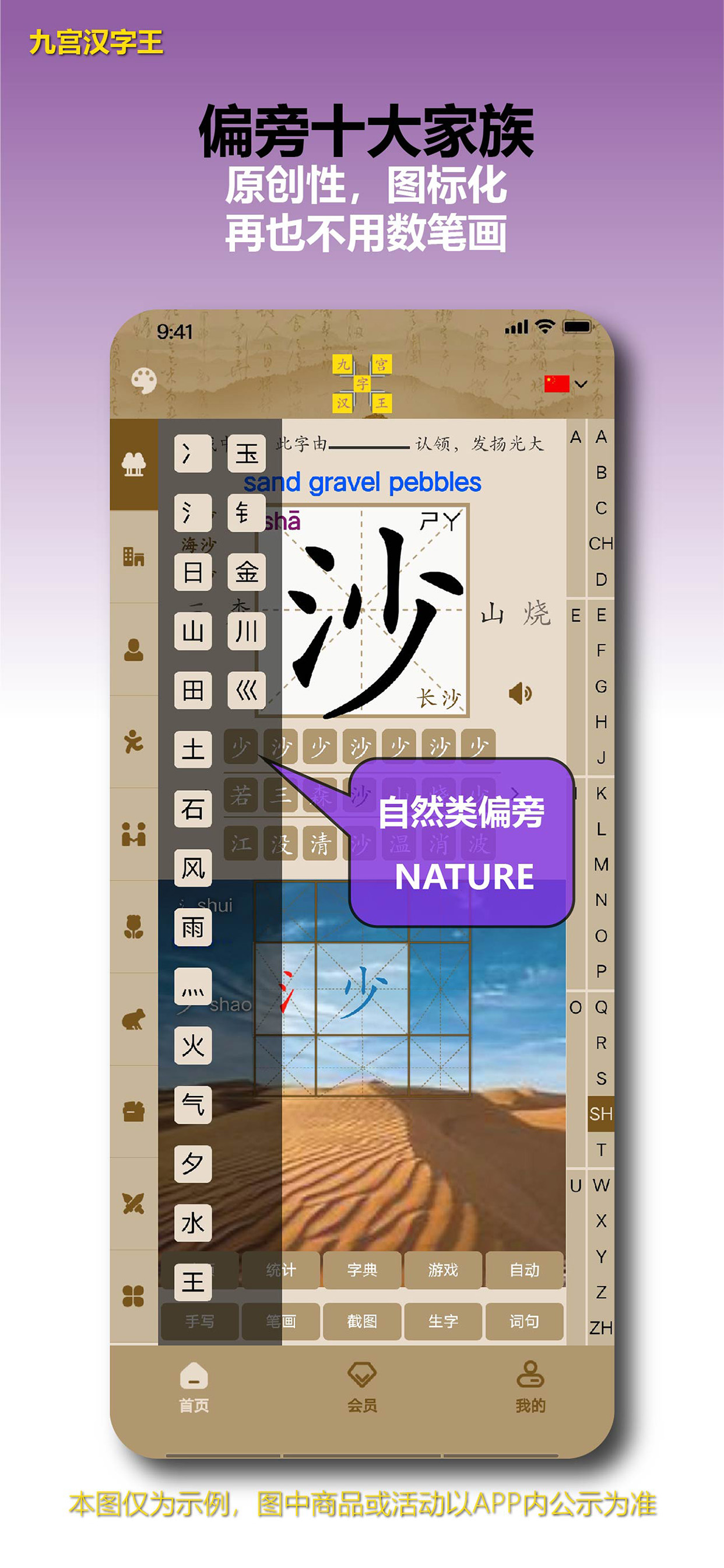 以核心、拼音及偏旁三个维度,以精选图片、自动发声及手指滑动方式,将视觉、听觉及触觉联合作用于大脑,科学高效。